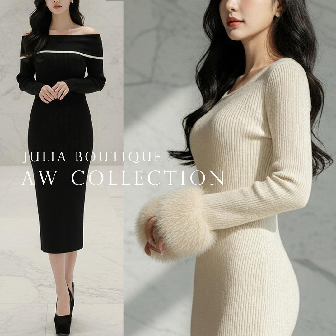 袖ファーマーメイドニットワンピース JB24539